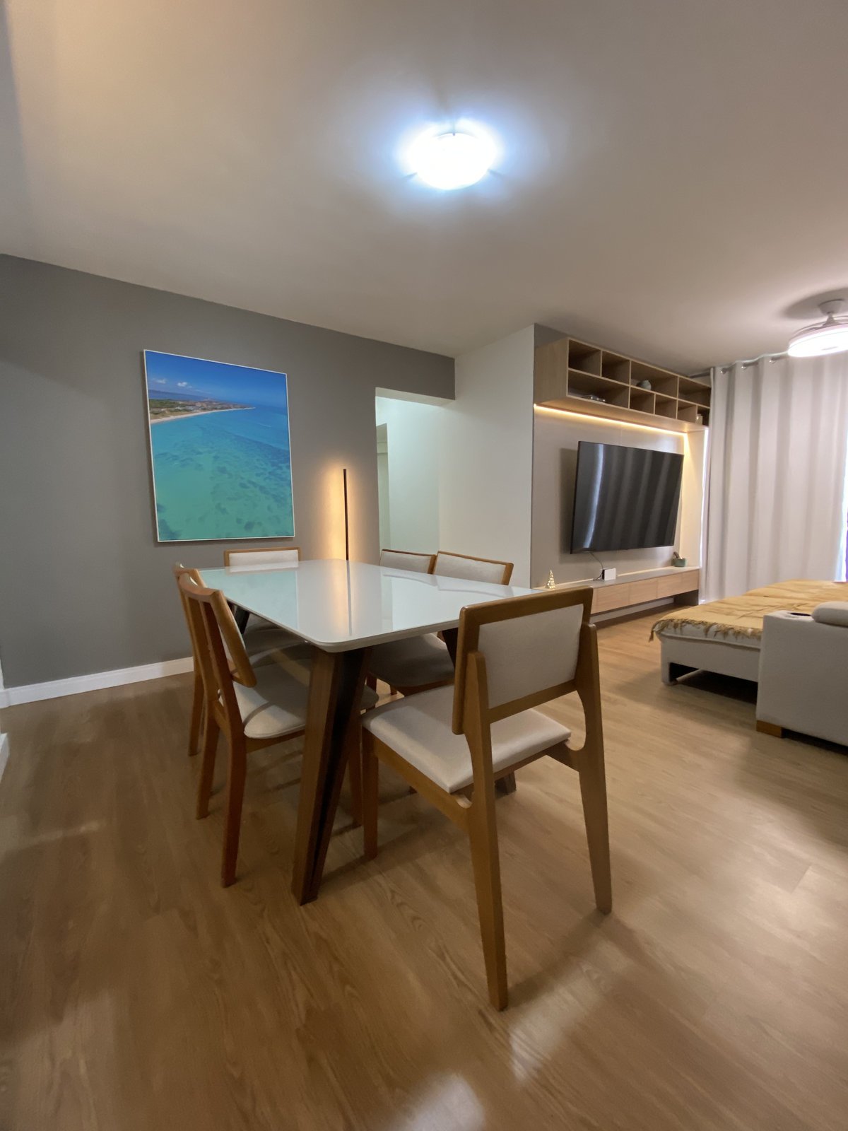 Para quem está acostumado com as longas distâncias entre grandes metrópoles, 40 minutos entre Goiana e João Pessoa é, de fato, um piscar de olhos. Essa proximidade estratégica motivou o casal a adquirir o Apartamento . como sua segunda casa, um refúgio de fins de semana, feriados e eventos que exala tranquilidade e proximidade com a praia.